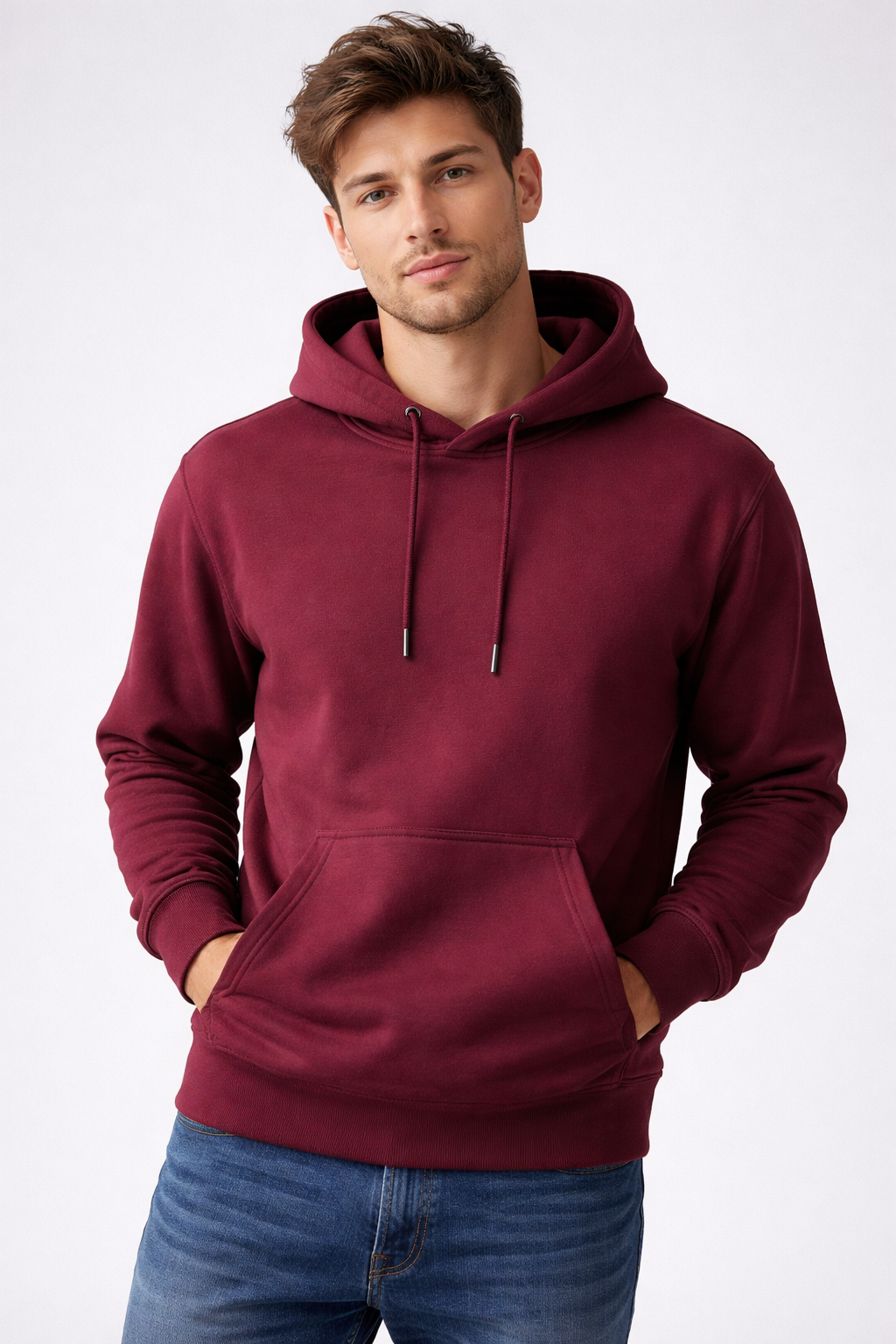 MEN'S MAROON COLOR REGULAR FIT HOODIES -300 GSM